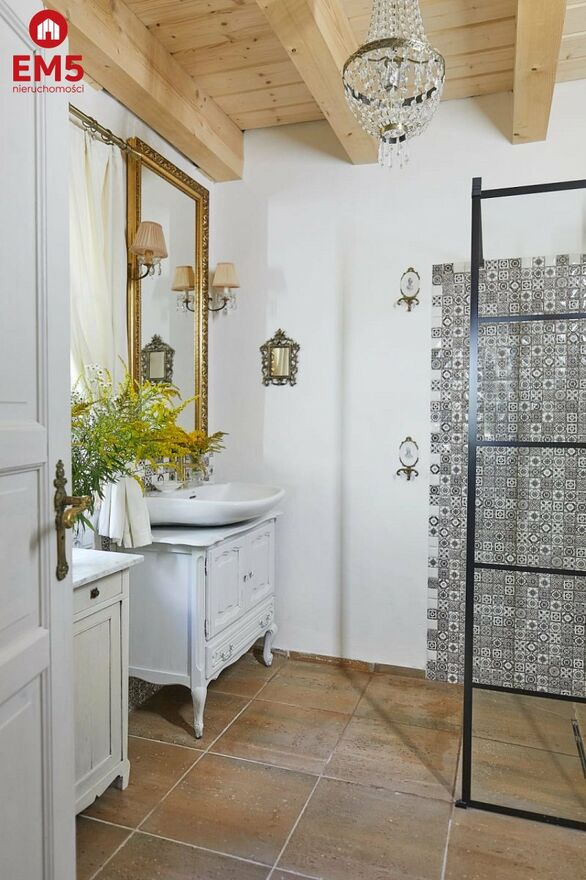 Całość dopełnia imponujący, 4,7-metrowy sufit, zwieńczony kryształowym żyrandolem, będący centralnym punktem wnętrza i symbolem elegancji. Ten dom idealnie sprawdzi się jako przestrzeń dla gości, rodziny lub źródło dochodu z wynajmu krótkoterminowego.